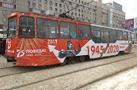 В честь праздника на левобережную маршрутную сеть нашего города вышел трамвай, оформленный к 75-летию Победы!